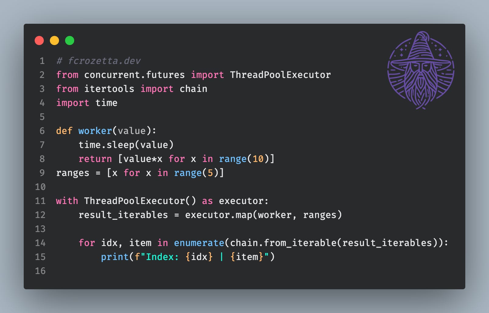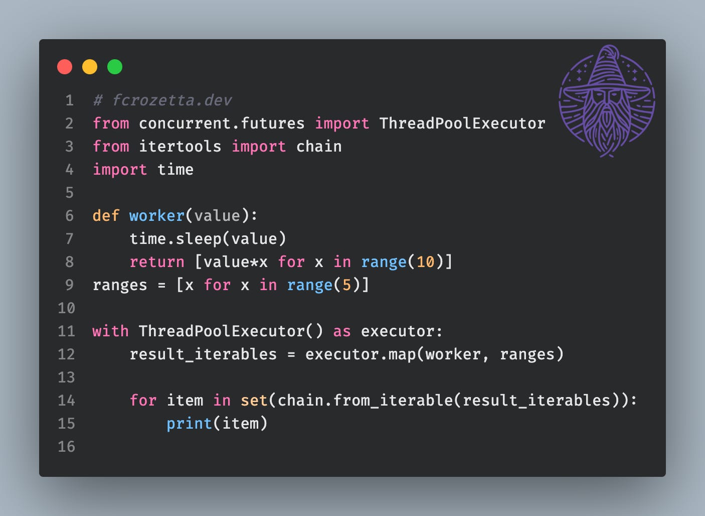 Imagine you have multiple threads that will return an iterable as response, and you need to remove all the duplicate responses: