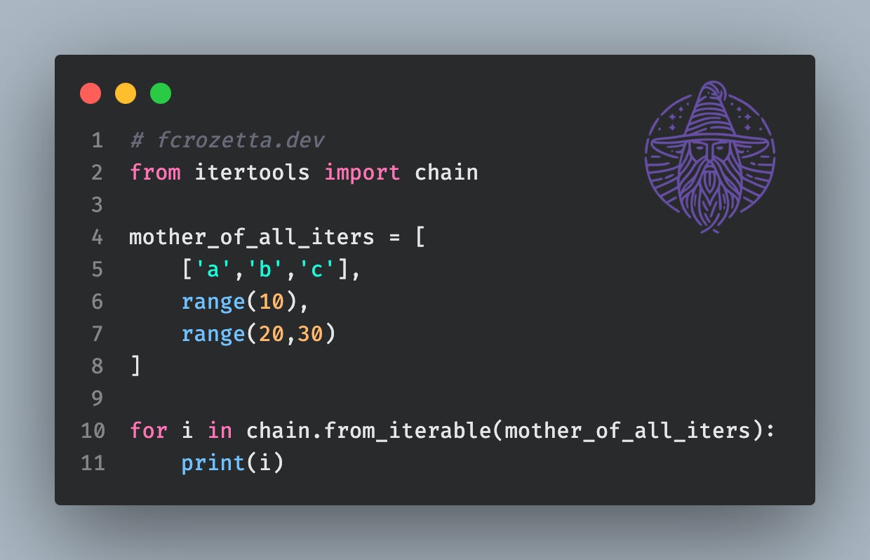 So you need to loop multiple iterables or lists, perform some actions, and move forward… or you need all of the lists to behave as one big list.